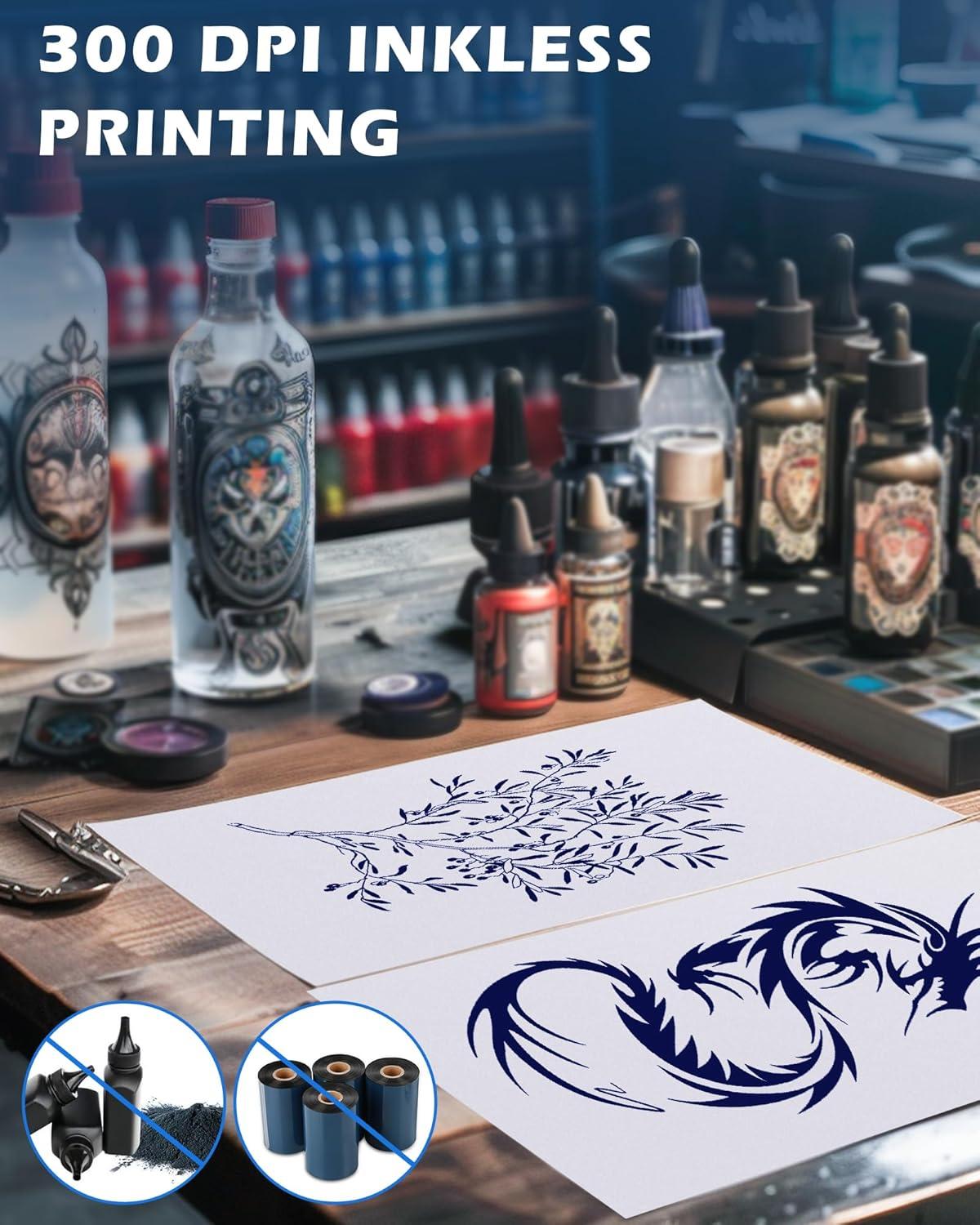 300DPI TATTOO STENCIL PRINTER: HPRT MT866 utilizes advanced direct thermal printing technology to capture every detail of your design with 300DPI resolution, producing crisp and clear stencils for perfect tattoo artwork. NOTE: MT866 tattoo printer is perfect for line style tattoos and unshaded black tattoos.