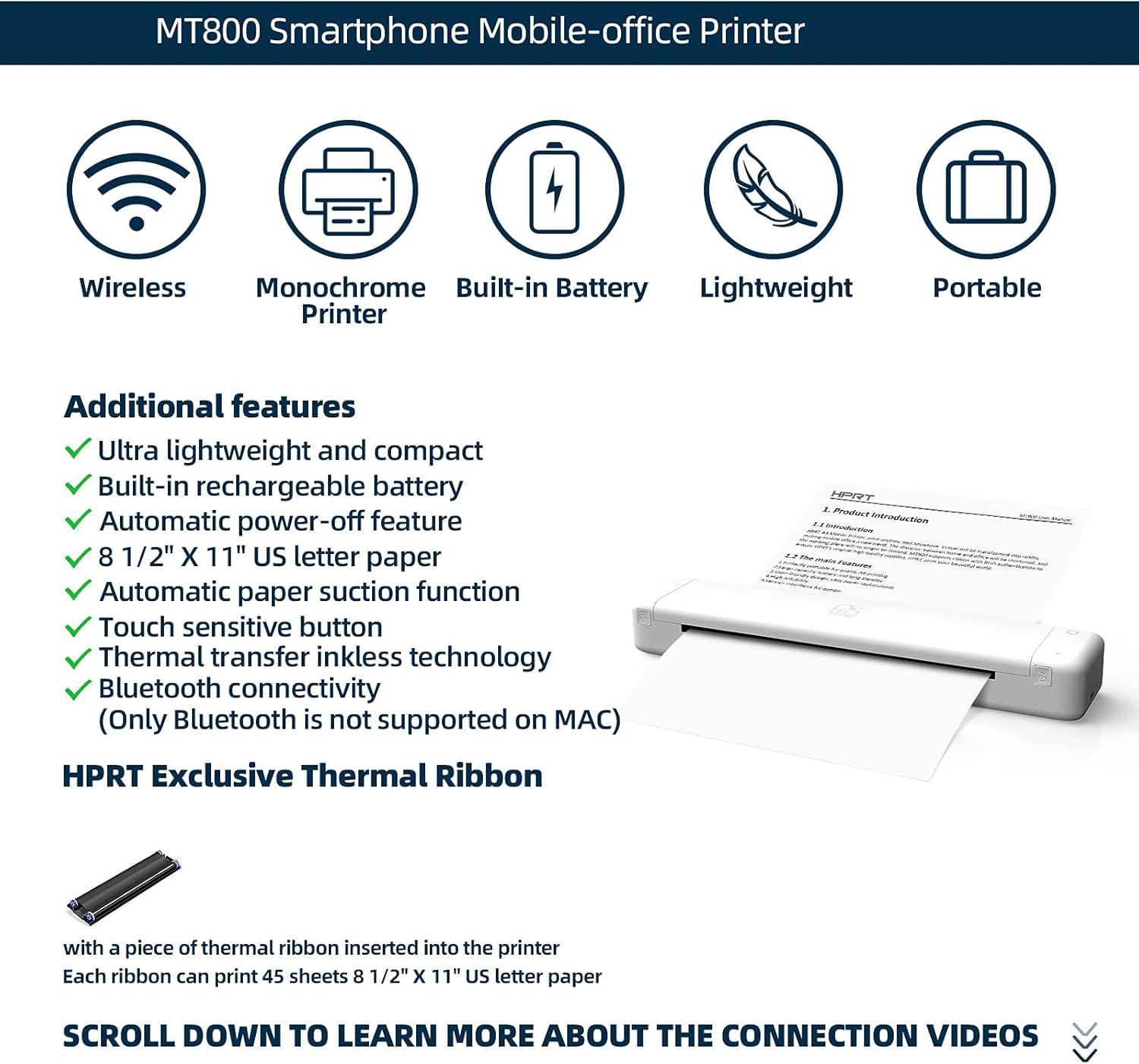 High compatibility- Not only does HPRT MT800 portable printer support iOS, Android, iPad with Bluetooth connection, but also be compatible with MAC and Windows (except for Chromebook) with USB cord connection.